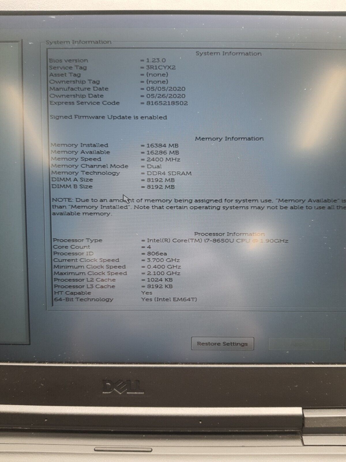 - i7 – 8650u 1.9Hz Intel Processor (Boost 4.2GHz 8MB Cache)