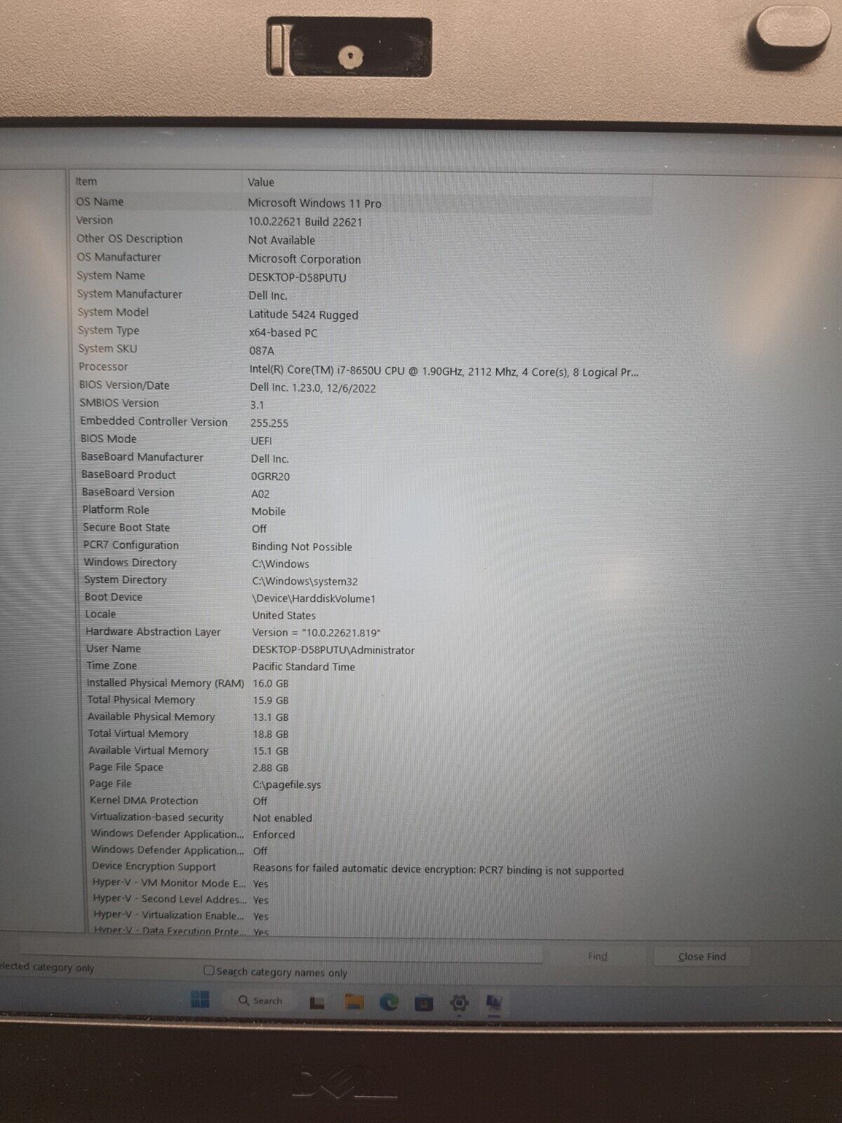 Dell 5424 Rugged Latitude 14in 8th Generation i7 1.90GHz Windows 11