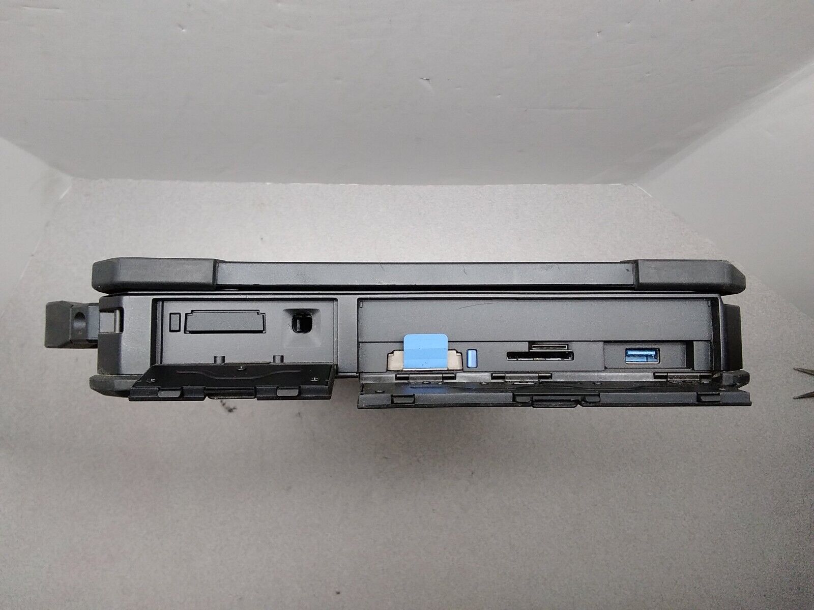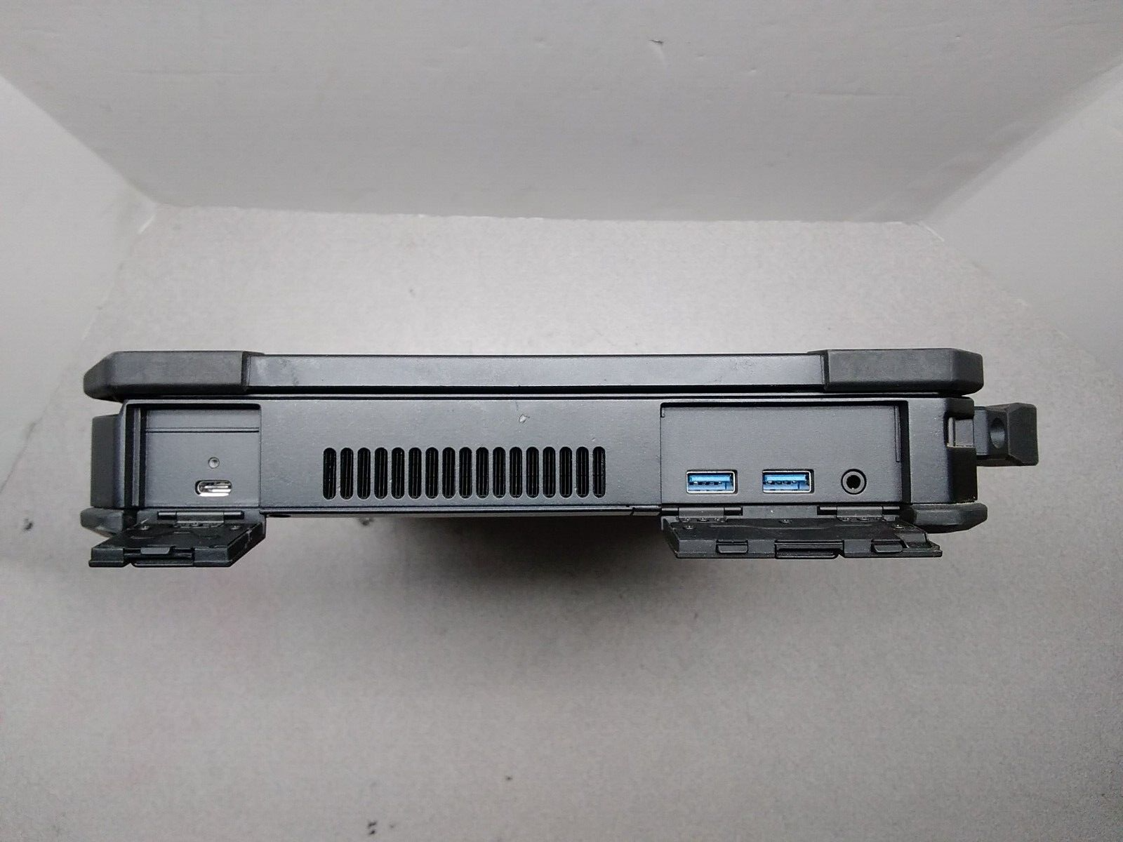 The Latitude 5424 Rugged has a 14-inch display. Resolution is full HD 1920 x 1080 pixel. This 14in display features a 220 nit screen. The Latitude 5424 Rugged offers excellent connectivity and expandability. There are three USB 3.0 ports, a USB Type-C port, a native RS232 serial port, a gigabit RJ45 LAN jack, audio in/out, HDMI-out, and a docking connector, all with protective covers.