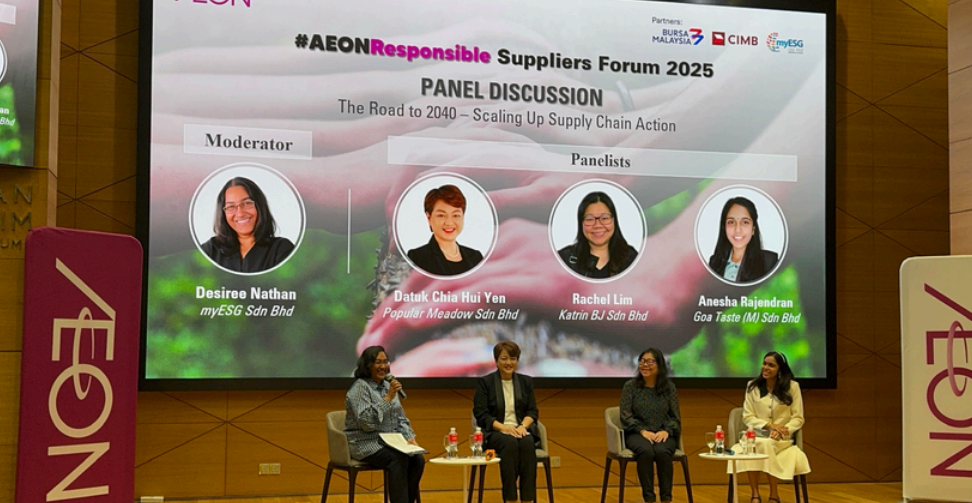 Our ESG journey began through participation in a sustainability awareness programme initiated by AEON CO. (M) BHD in collaboration with Bursa Malaysia, MY ESG Sdn Bhd, and CIMB.
